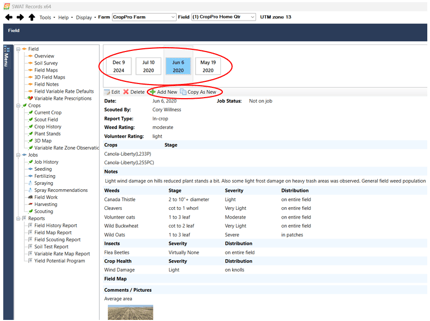 2. If applicable, past scouting observations for the field will be displayed along the top.